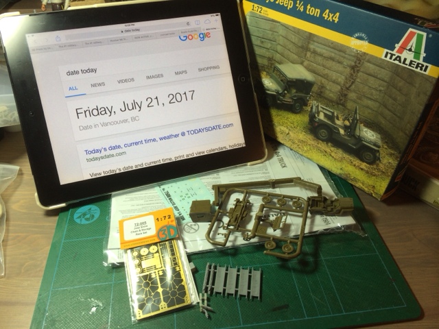 I'm joining a jeep group build on Armorama. I've decided to build the Italeri fast assembly jeep kit in 1/72 scale. I'll adding snow chains from the O3D Miniatures PE set. I also have some 3d printed stretchers, radio, antenna and ammo boxes that I want to add. Still uncertain if this will be a radio jeep or ambulance jeep.